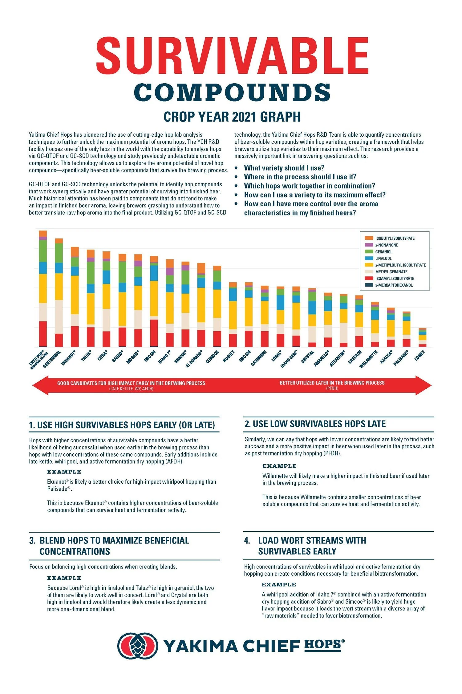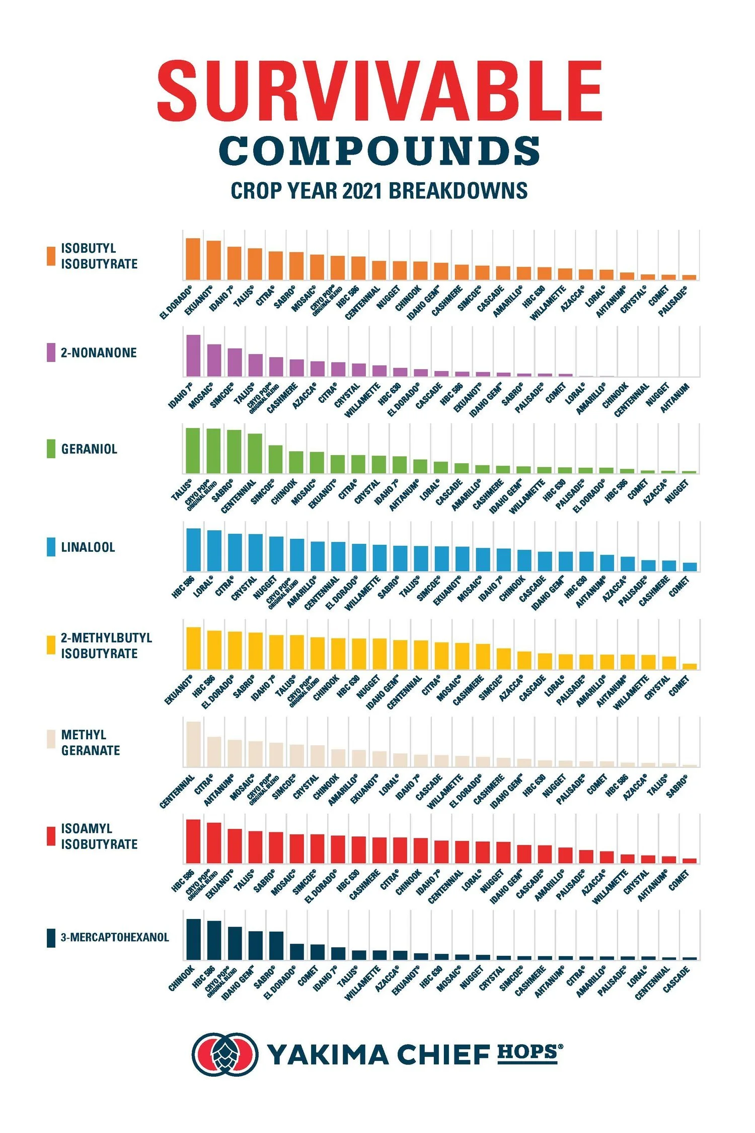 The more a variety has of a compound, the more that will survive the brewing process. It’s that easy. For example, Chinook has a lot of 3MH, so this can be used in whirlpool or active fermentation and some 3MH will still survive. However, if you do the same with Cascade, you’ll likely lose it all. So you would use Cascade on the cold side or post-fermentation dry hop.