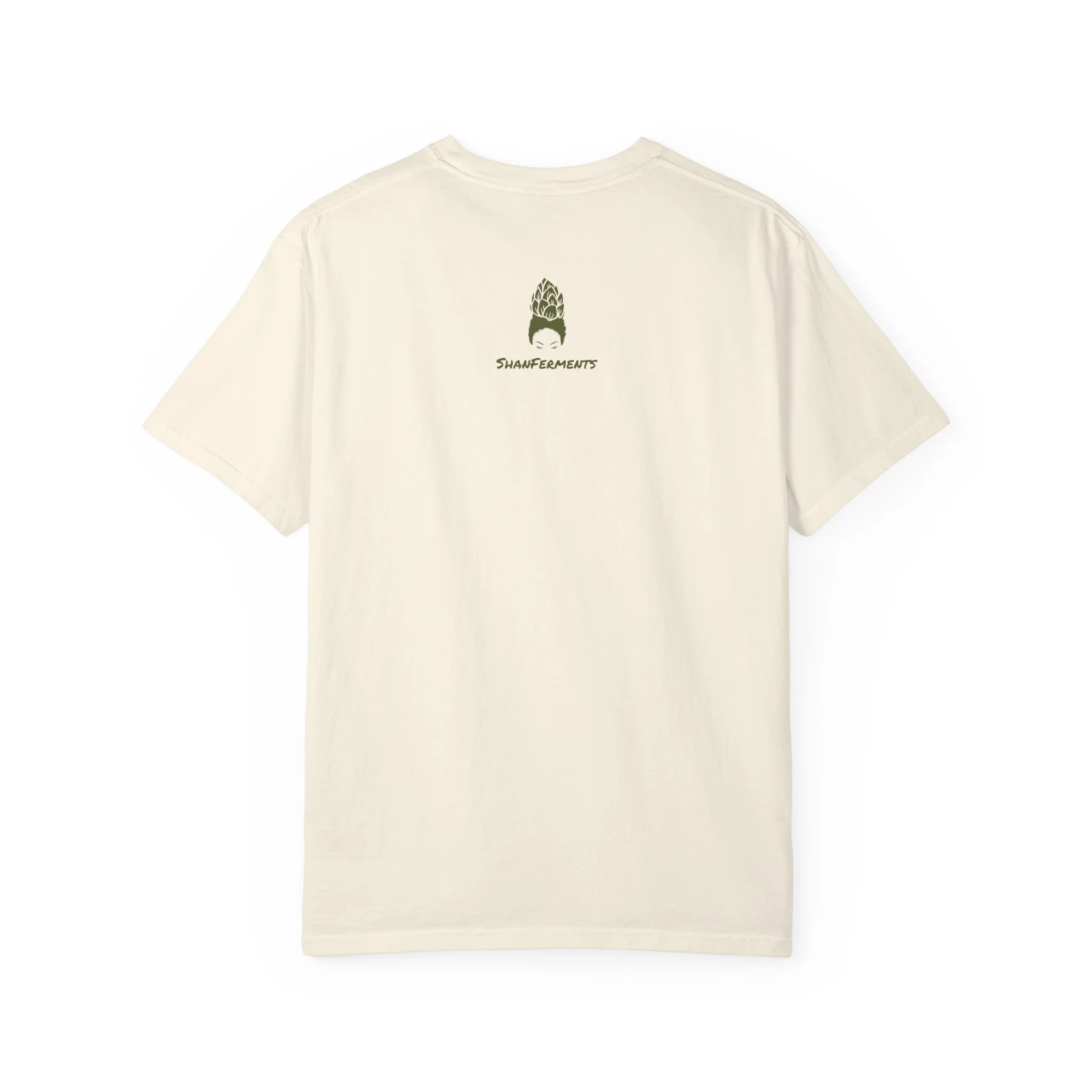 This heavyweight garment-dyed tee carries a vintage, autumnal vibe—an illustrated pumpkin centerpiece framed by curling vines and a ribbon banner that reads with wry humor. The soft, broken-in dye and relaxed fit invite you to wear it on cool mornings at the farmers’ market, while carving pumpkins, or layered under a flannel for bonfire nights. It’s for people who love tactile, lived-in clothing and enjoy a little clever seasonal wit in their wardrobe. The sewn-in label and durable double-needle seams mean it will age gracefully through many crisp-fall weekends.