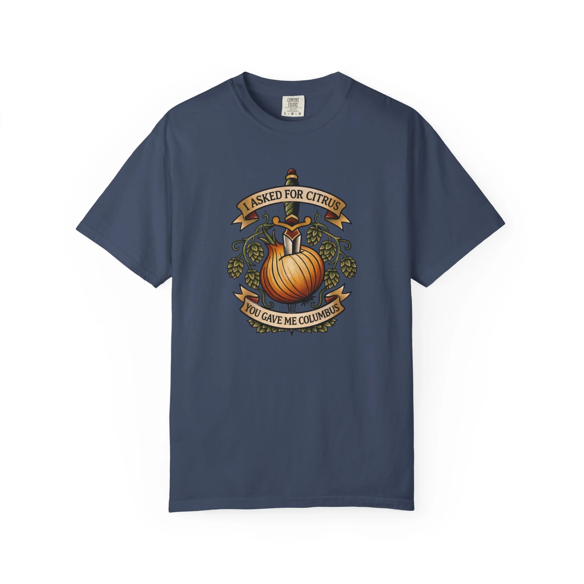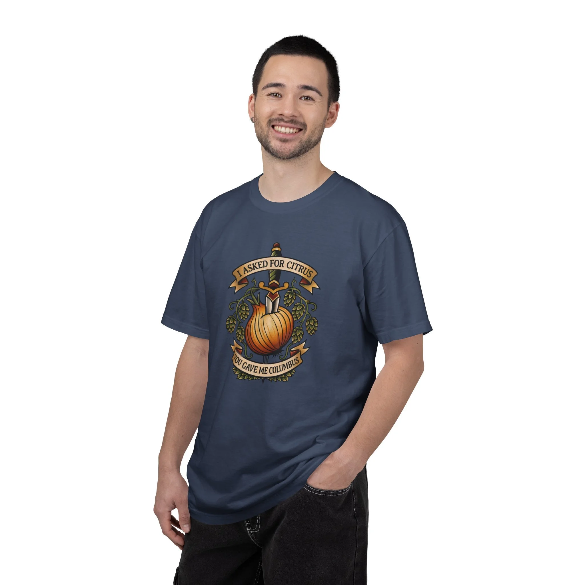 Pumpkin Harvest Tee — "I Asked for Citrus, You Gave Me Columbus" Fall Graphic T-Shirt